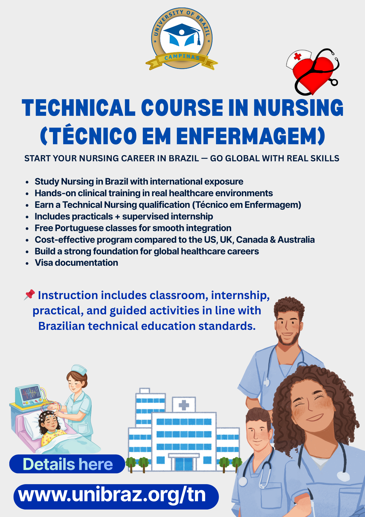 / REGISTRATION FOR ON CAMPUS TECHNICAL COURSE IN NURSING (TÉCNICO EM ENFERMAGEM) IN BRAZIL